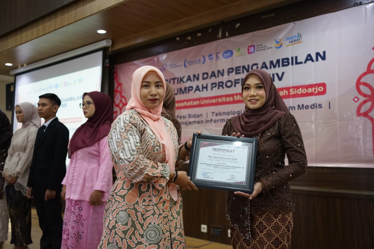 Mahasiswi Fakultas Ilmu Kesehatan (FIKES) Universitas Muhammadiyah Sidoarjo (Umsida) ini resmi menyandang status sebagai tenaga kesehatan profesional sekaligus meraih predikat lulusan terbaik Program Studi Profesi Kebidanan.